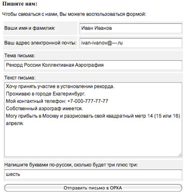 Новая высота в российской аэрографии!Объединение Российских Художников Аэрографии (ОРХА) намерено установить новый рекорд России. Объектом такой рекордной высоты должно стать большое аэрографическое полотно, которое будут создавать 49 художников в течение 3 дней. Действие будет происходить вживую на глазах у посетителей и участников «Московского Тюнинг Шоу» в выставочном комплексе «Крокус Экспо» с 15 по 18 апреля 2010 года. Стань одним из 49 рекордсменов! Первое «Московское Тюнинг Шоу» запомнится как яркое, красочное, шумное событие с насыщенной шоу-программой, благодаря конкурсам, мастер-классам, тест-драйвам. В рамках «Московского Тюнинг Шоу-2010» будет организована галерея картин с дизайнерской индивидуальной аэрографией - работ конкурсантов «Мастер Аэрографии» 2007-2009 годов. А в последний день тюнинг шоу будет открыт занавес и представлена зрителям коллективная картина, выполненная 49 независимыми художниками аэрографии. Что это будет за картина пока тайна не только для будущих зрителей, но и для всех участников шоу. Можно сказать только одно – это будет впечатляющее полотно общей площадью 49 квадратных метров! Жилье, развлечения, достопримечательности Крыма, все это тут - КрымКурорт - все об отдыхе в Крыму . Отели, гостницы, рестораны, развлечения в Крыму После демонстрации картины состоится регистрация нового российского достижения в области современного изобразительного искусства - рекорда «Самая большая коллективная аэрография». Прими участие в установлении рекорда! Внеси свою лепту в историю российской аэрографии!